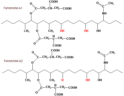 680 μg fumonisine per kg product aangetroffen. Al deze monsters bevatten ook het fumonisine B1